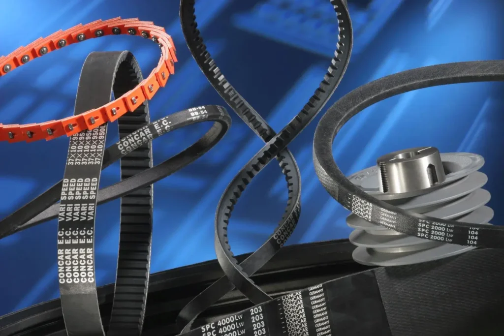 V-belts, timing belts, and flat belts for efficient mechanical power transfer.